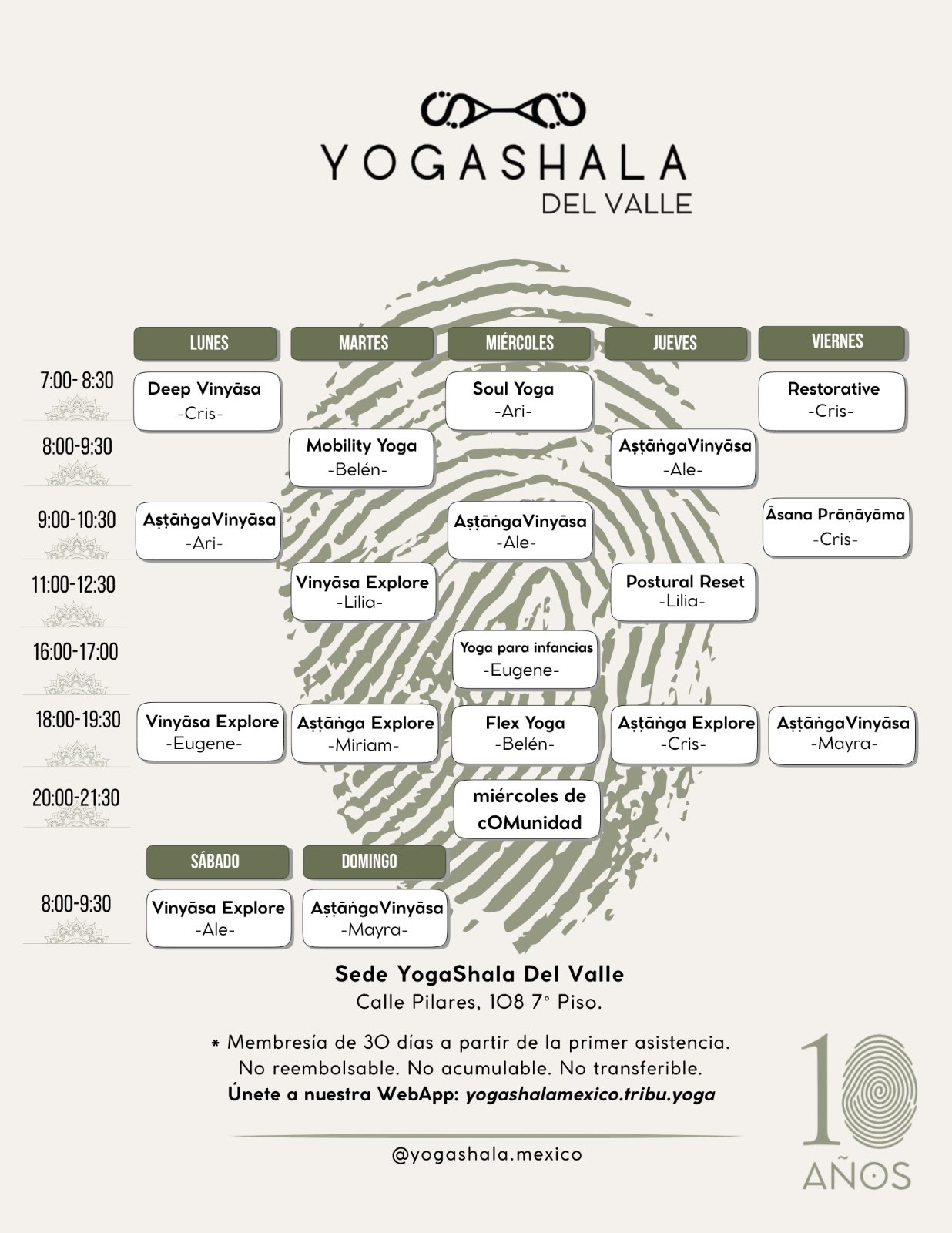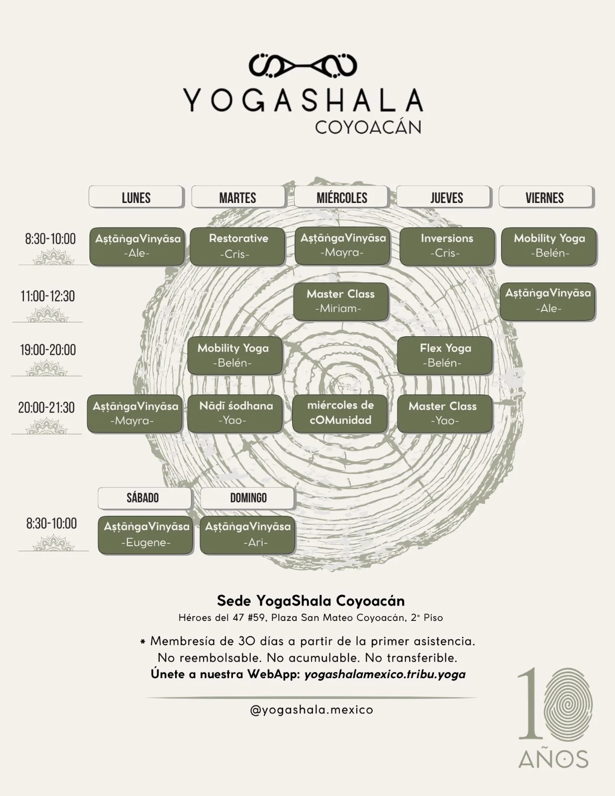 Inlcuye clases ilimitadas en horarios regulares en ambas sedes de YogaShala México, durante el proceso de formación.